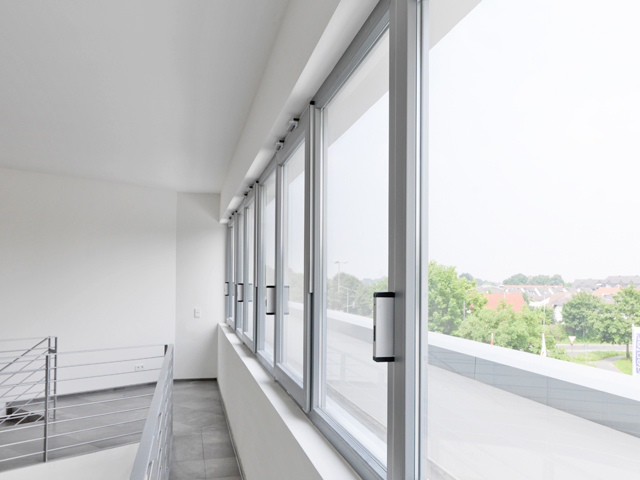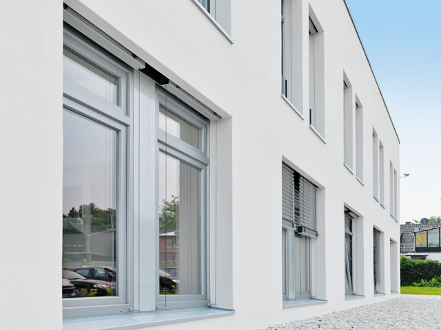 Das Konzept der Praxisgemeinschaft stellt den Menschen in den Mittelpunkt und möchte für die Patienten eine freundlich-helle Wohlfühl-Atmosphäre mit großzügigen Fensterflächen schaffen. Der elegante Eindruck wird durch den schimmernden Look der hochwertigen Folienbeschichtung ›Architecture‹ Colors in Weiß Aluminium unterstützt.