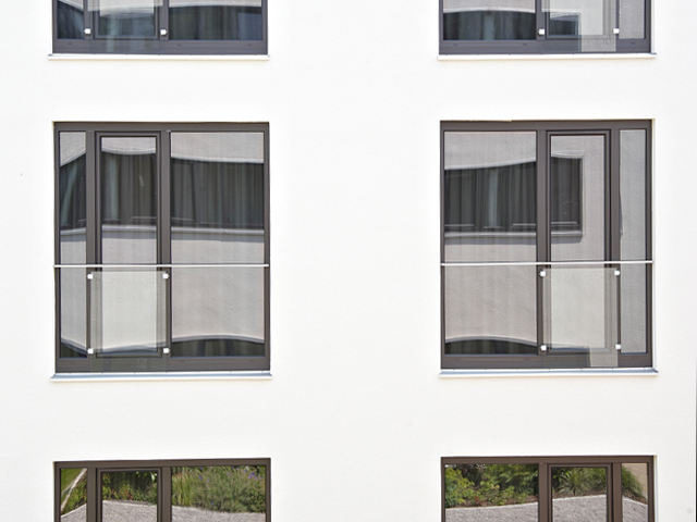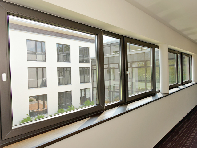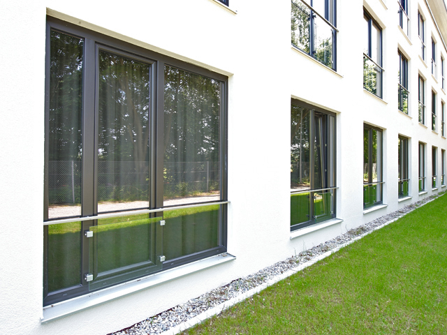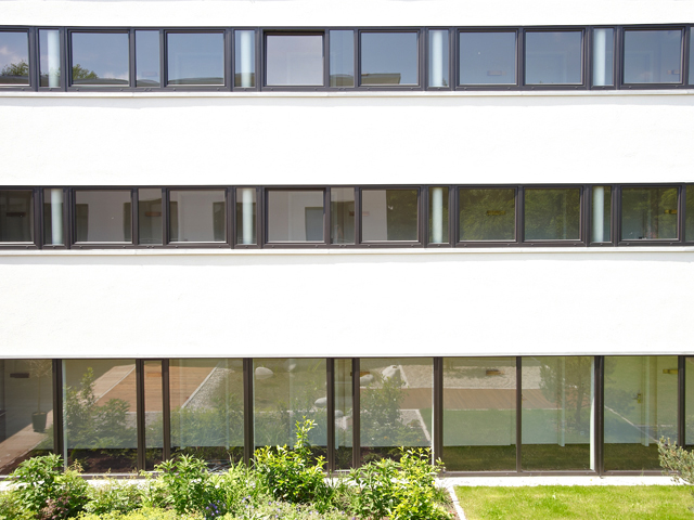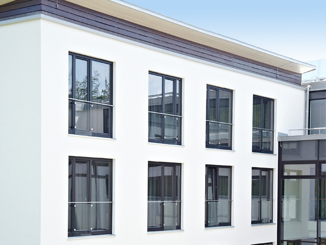 Schlichte Eleganz in Kombination mit edlen Materialien: So präsentiert sich das 4-Sterne Hotel >fürstenfelder<. Die Fenster fügen sich mit ihrer glänzenden Optik und der feinen Oberflächenstruktur hervorragend in die Architektur des Gebäudekomplexes ein. Der grau durchgefärbte Profilkörper harmoniert bestens mit der Farbe Graphit Schwarz aus den ›Architecture Colors‹.