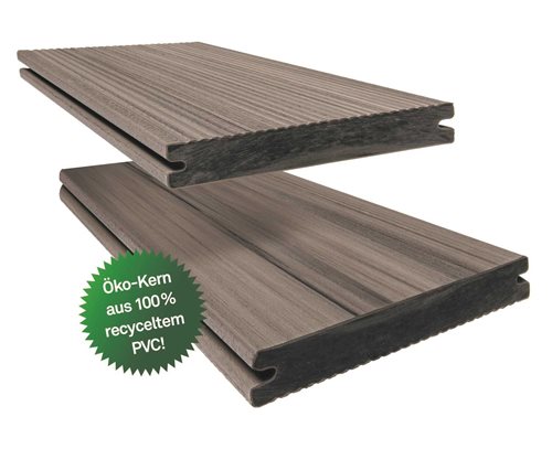 Die neueste Generation unserer Terrassensysteme aus Twinson ( WPC ) hat eine robuste Kunststoff-Oberfläche. Ein natürlicher Look wird durch eine Prägung, die der Beschaffenheit von Holz nachempfunden ist, erzielt. Sie haben eine Auswahl zwischen vier schönen Farben für die Gestaltung Ihrer Terrassen oder Außenanlagen