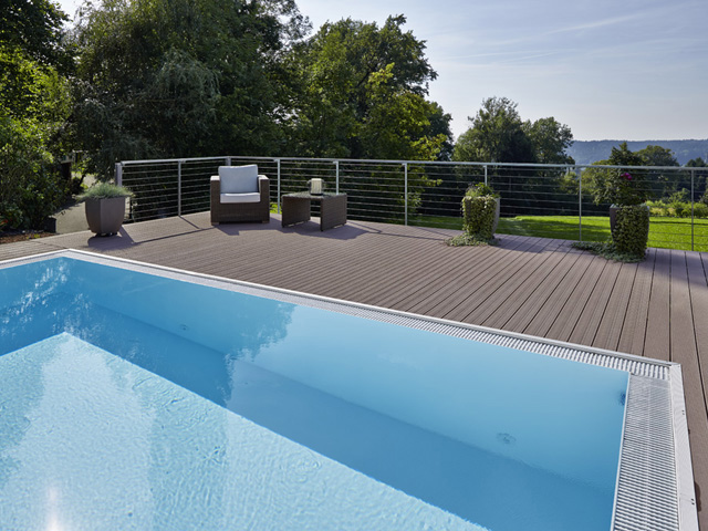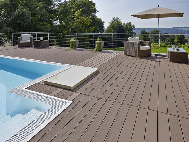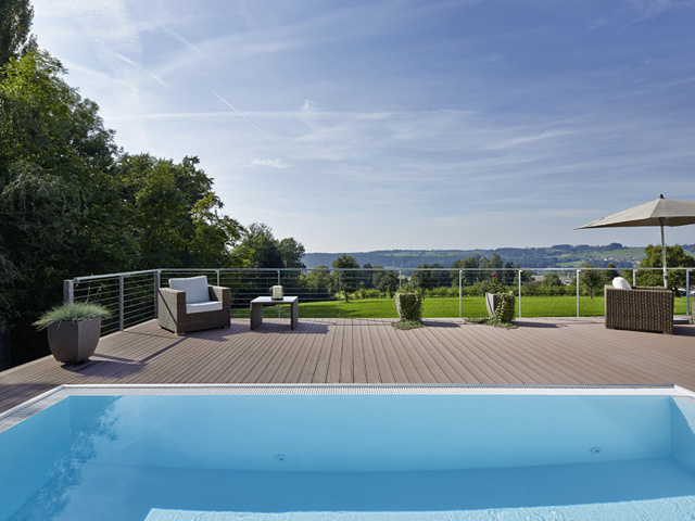 floorboards are extremely resilient, durable and easy to clean, given that they do not have any hollow chambers unlike other floorboards and therefore, the floorboards can be cut as easily and accurately as wood. Character Massive is therefore ideal for pool borders and curved shapes.